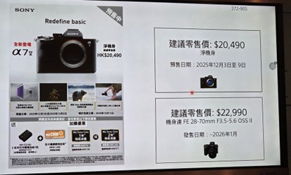 ▲A7 V 即日接受預訂,機身價 $20,490 和 A7 IV 相同,而配搭 FE28-70mm F3.5-5.6 OSS II 套裝價 $22,990。