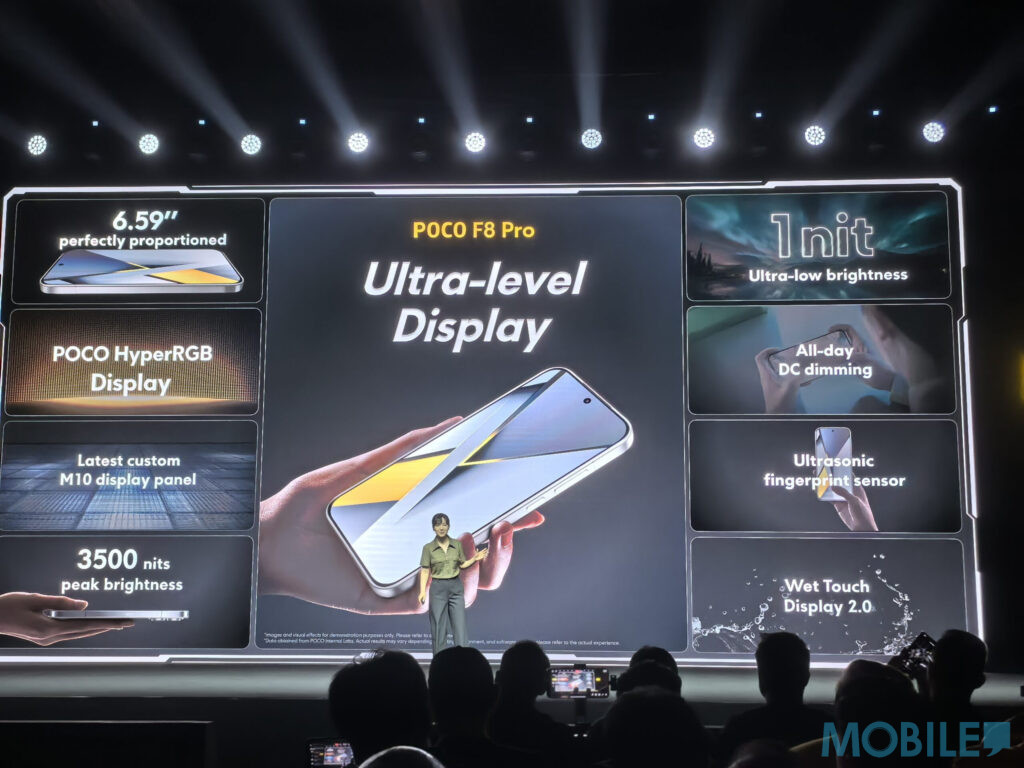 Poco F8 Pro 將採用一塊 6.59 吋 LTPS 平面 AMOLED 螢幕,支援 Full-HD+ 解像度及 120Hz 更新率,配備 Snapdragon 8 Elite 處理器。