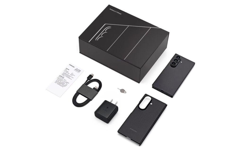 包裝內容物方面,Galaxy Z TriFold 國行版與早前推出韓版一樣,跟齊 Kevlar 保護殼、45W 充電器跟電源線,同時外屏亦已貼上防反射保護膜。