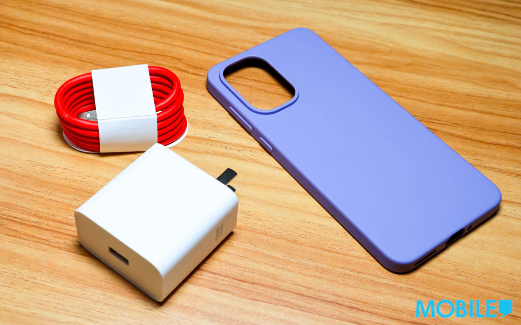 開箱電光紫色款 OnePlus Ace 6T 手機,品牌經典全紅包裝盒設計,內附 USB-A 轉 C 閃充線、100W 輸出閃充、相同配色軟膠機套及出廠已貼上屏幕保護貼。