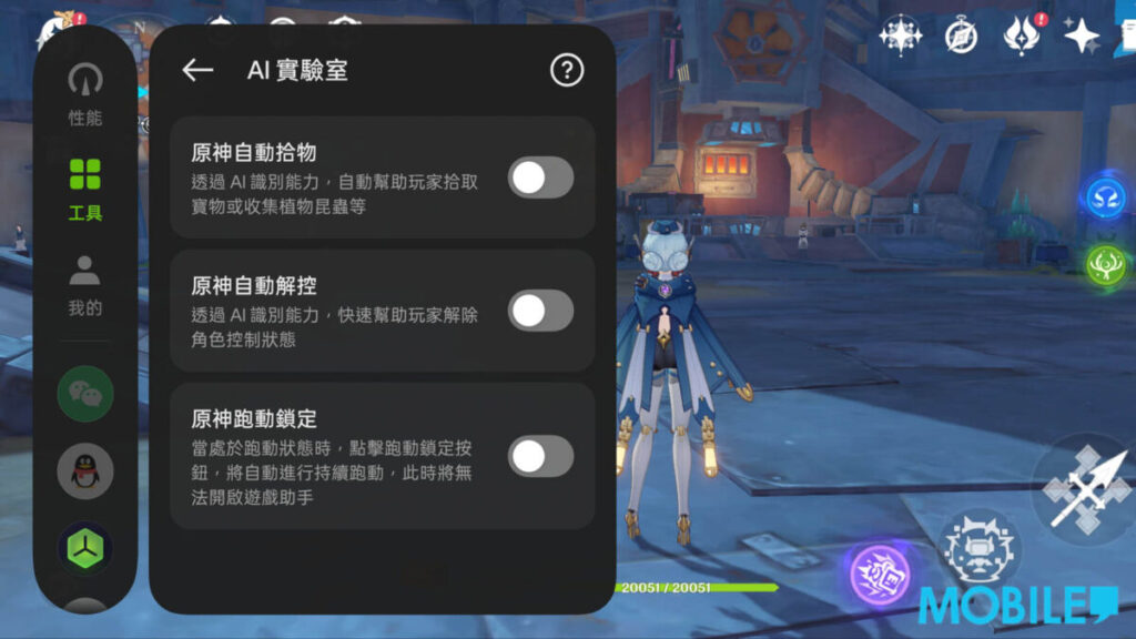 這次 Ace 6T 遊戲助手的 AI 實驗室工具,可為《原神》加入各項提升遊戲體驗快捷功能,或啟動 4D 震感支援,按遊玩場合加強機身震動反饋。