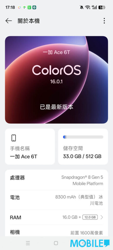 Mobile Magazine 短評:升級《遊戲助手》後 OnePlus Ace 6T 已具專業電競手機使用體驗,除有國行平價旗艦常見不支援 5G NSA 缺點,整體效能價格比相當不錯。