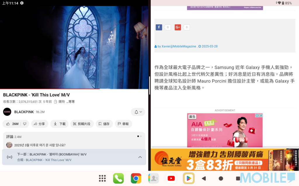 ▲搭配大螢幕能同時運行兩個應用