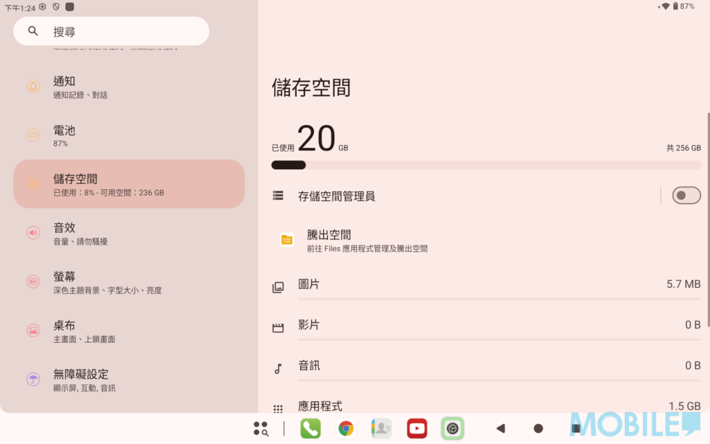 在實際測試中,這組配置能流暢運行日常應用程式,包括文書處理、社交媒體及影音串流平台。若需要更多儲存空間,平板支援透過 microSD 卡擴充至 1TB,方便存放大量文件或媒體內容。
