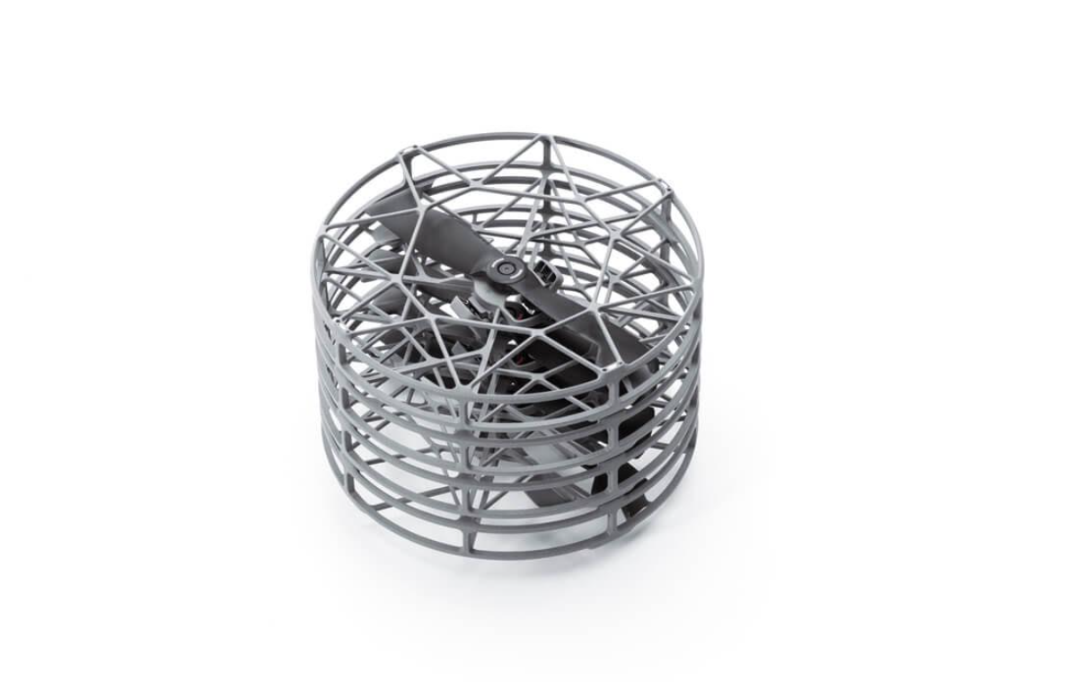 在安全功能上,此防護罩能有效隔離高速旋轉的槳葉,降低意外碰觸導致人員受傷的風險,同時也能避免飛行途中槳葉撞擊異物而損壞,為航拍機提供多一重保護。