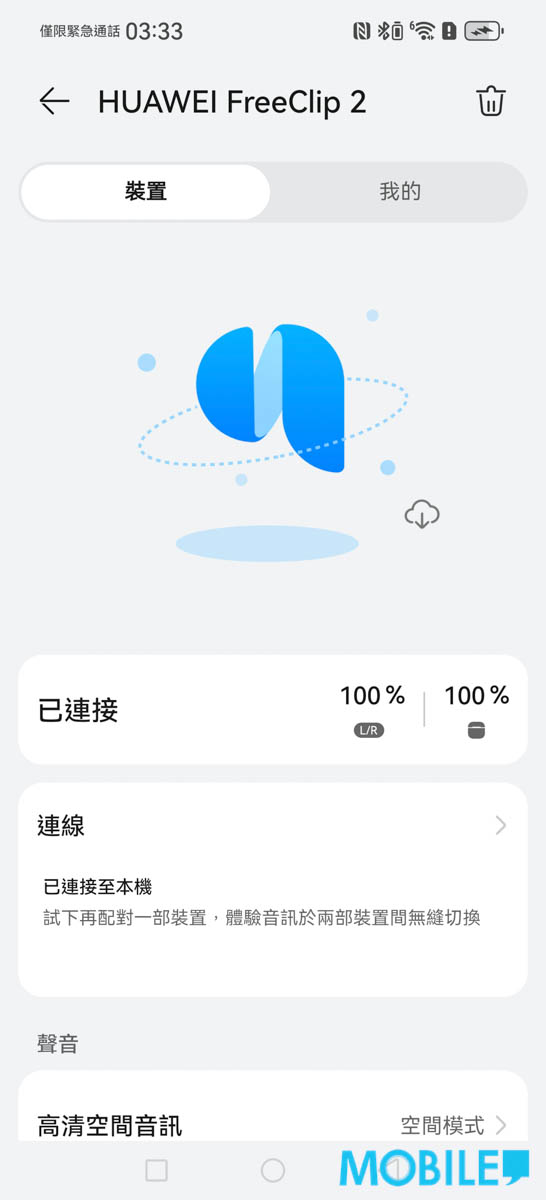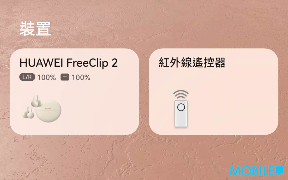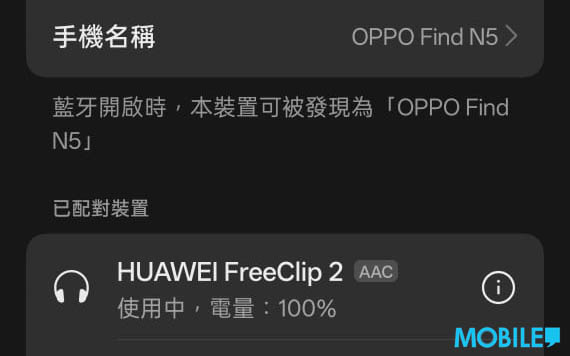 配對部份實試採用 HUAWEI Pura 80 跟 OPPO FIND N5手機,均可透過《智慧生活》App 直接配對 FreeClip 2 耳機,並能在介面顯示耳機跟充電盒剩餘電量。