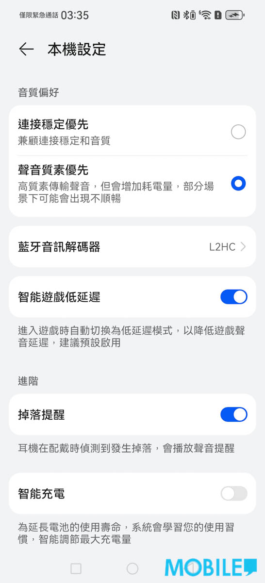 ▲ 具四組預設音效模式(左);可選音質偏好、L2HC 編碼播放及遊戲低延遲功能(右)