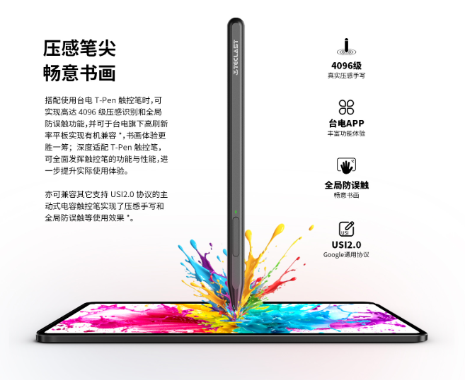 作為一款定位創作的產品,ArtPad Air 最大的賣點在於支援 T-Pen 4096 級壓感觸控筆(需另外加購)。對於有繪畫或手寫筆記需求的用家來說,能夠感應力度變化的壓感技術是必備功能。機身設計方面,新機採用了 CNC 注塑金屬機身,厚度僅為 7.3mm,在同級產品中屬於輕巧便攜的一類。此外,機身側邊設有 Smart Button 自定義快捷按鍵,用家可以根據使用習慣將其設定為一鍵開啟特定應用程式,或是快速切換不同的操作模式。