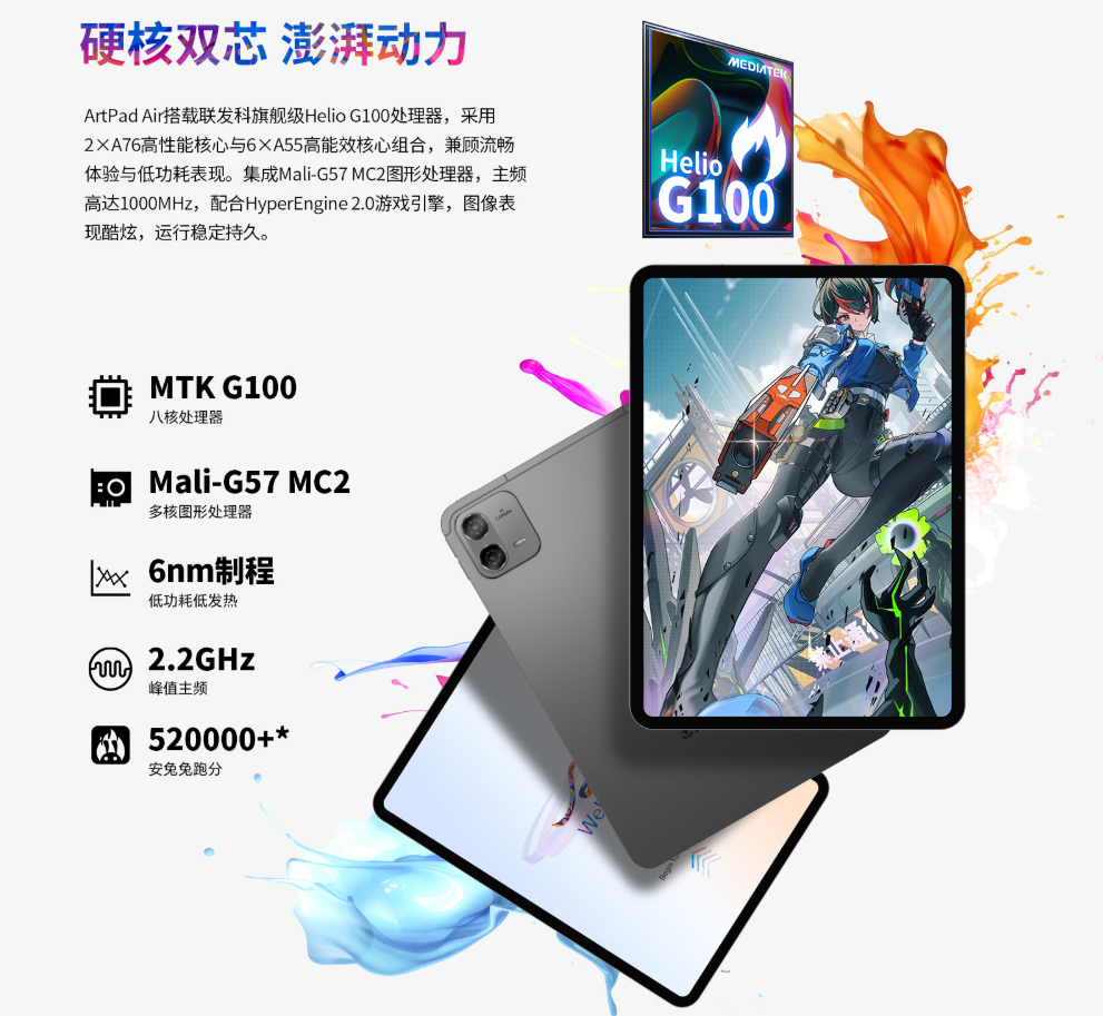 雖然處理器定位於中階入門水平,但足以應對日常社交媒體、視聽娛樂以及基礎的數碼繪畫任務。系統則採用了最新的 Android 15,並針對平板電腦操作優化了 ArtOS 介面,提供多模場景切換功能。