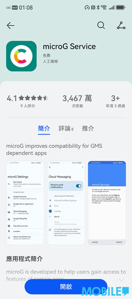 ▲ 於 AppGallery 搜尋及安裝兩款 MicroG 套件