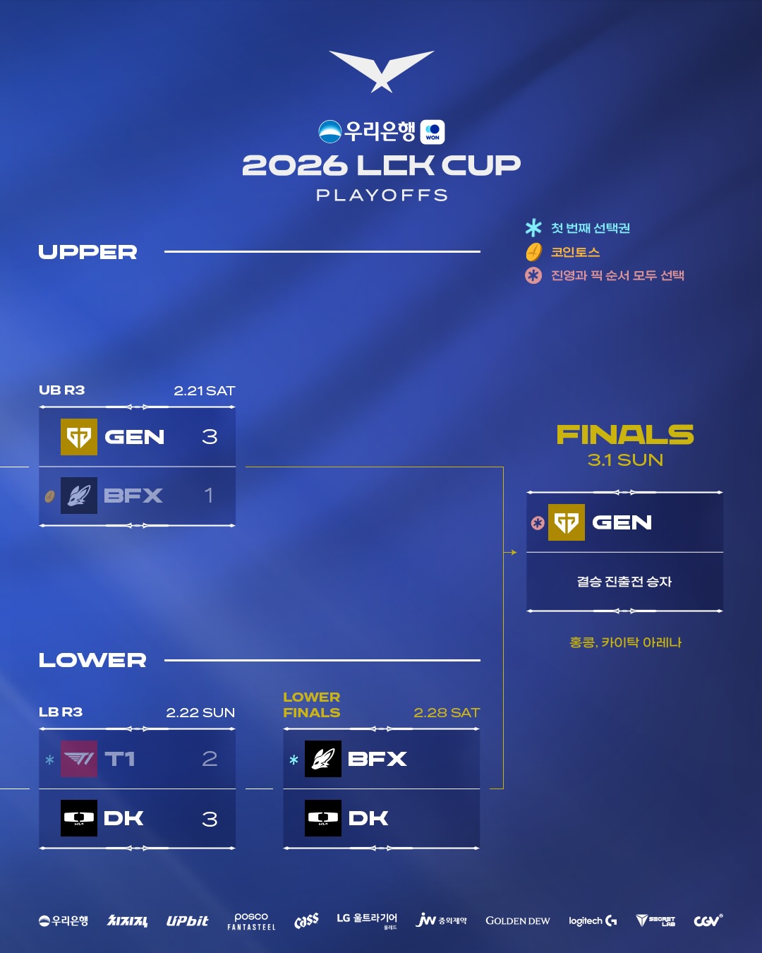 經過連日激烈對戰,晉級香港最終階段賽事的3支隊伍終於誕生,分別為Gen.G、BNK FearX 及 Dplus KIA (DK)。根據賽程安排,2月28日(星期六)將率先上演敗者組決賽,由今屆黑馬BNK FearX對陣狀態回暖的Dplus KIA,爭奪最後一張總決賽入場券。勝出隊伍將於3月1日(星期日)的總決賽,挑戰提前鎖定席位的常規賽王者Gen.G,競逐LCK Cup冠軍獎盃,以及代表LCK出征國際賽事「First Stand Tournament」(英雄聯盟全球先鋒賽)的資格。