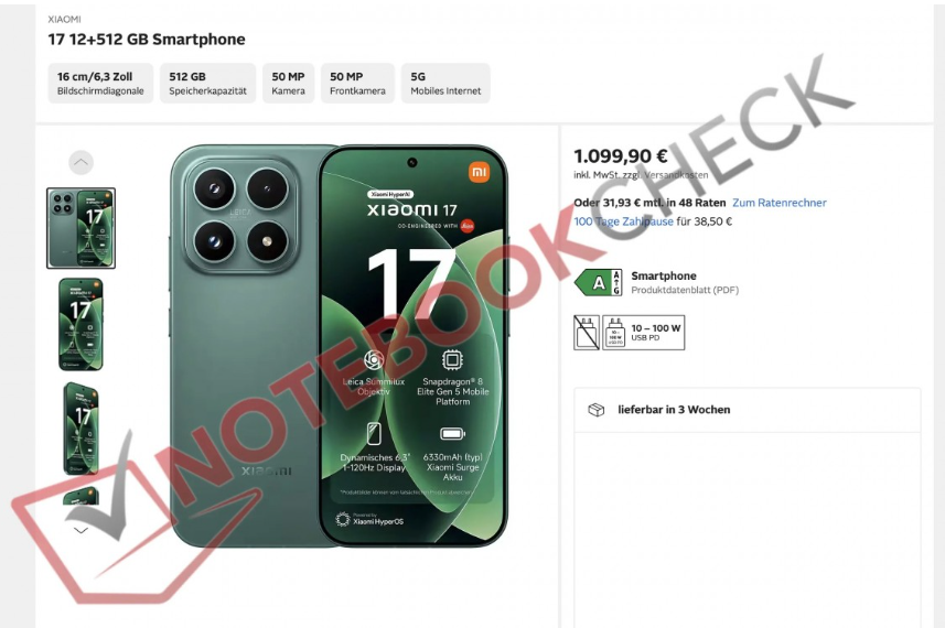 【MOBILE】雖然 Xiaomi 17 早於去年九月已在國內正式發佈,但國際版至今仍只聞樓梯響。不過,近日有德國零售商率先在其網站列出了 Xiaomi 17 的產品頁面,意外令這款旗艦新作的海外定價及規格細節提早曝光。