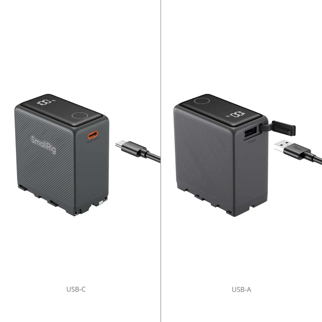 這款電池採用影視業界應用相當普及的 Sony NP-F970 規格,能直接安裝在各式攝影燈具、外置monitor上,透過 SmallRig 自家的 NP-F 電池轉接板,可進一步為各種相機供電。此外,電池本體整合了 USB-C 與 USB-A 連接埠,具備類似行動電源的功能,能同時為多種行動裝置供電。USB-C 與 USB-A 輸出電路採獨立設計,支援兩台裝置同時快叉,總輸出功率最高可達 54W。