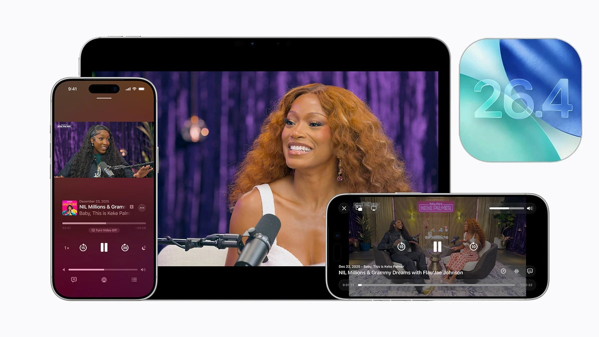 Apple 官方宣佈,Apple Podcasts 將在今年春季引入基於 HLS 技術的全新影片 podcast 方案,用戶可以在同一節目內隨時在「純收聽」與「睇片」之間切換,支援橫向全屏播放及離線下載,並根據網絡自動調整畫質,創作者亦可透過動態插入影片廣告獲利。iOS 26.4、iPadOS 26.4 同 visionOS 26.4 測試版已開放 HLS video podcasts 功能試用,正式版將於春季向所有用戶推出。
