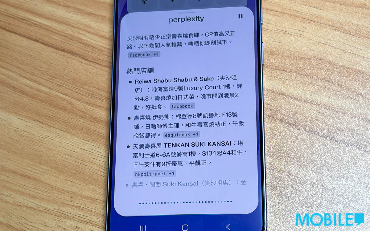 這次 AI 拍擋助理使用上非常智能,如能尋找指定媒體(下圖以 Mobile Magazine 為例)關於指定產品(下圖以 S26 為例)的報導文章;或詢問指定地區、提供指定種類餐飲美食店家資訊。