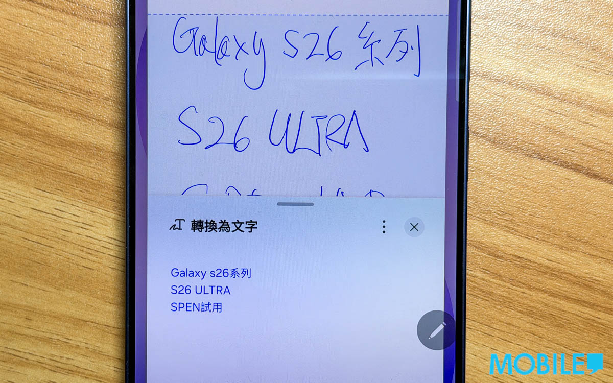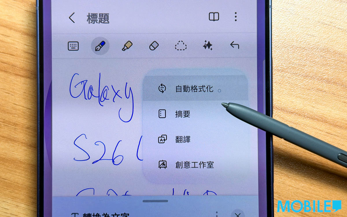 除創作工作室外,在 S26 Ultra 以 S Pen使用「建立筆記」功能,會自動登入《Notes》進行書寫,實試「自動格式化」工具辨識中英文混雜較撩草筆跡,輸出結果更出色。
