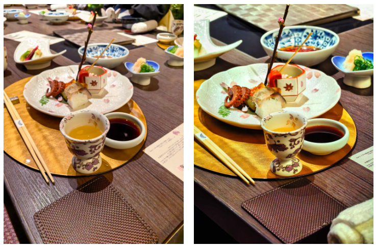 影食物相最常遇到的問題是陰影擋住光線。由於一般手機的廣角主鏡頭焦距較短,拍攝時必須將手機放得很近,這時機身和手部往往會遮擋了餐廳的頂光,導致食物表面出現不自然的陰影。Mate X7 的長焦鏡頭就能解決這個痛點,用家只需稍微拉遠拍攝距離,利用 3 倍或更高的光學變焦進行拍攝,既能保留充足的光線,亦能避免手機陰影落在餐碟上。