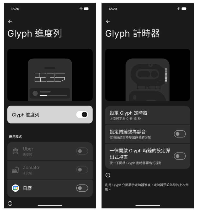 ▲Nothing OS 內設有 “Glyph” 燈光介面,用戶可以自行選擇鈴聲及來電燈光的閃亮方式。