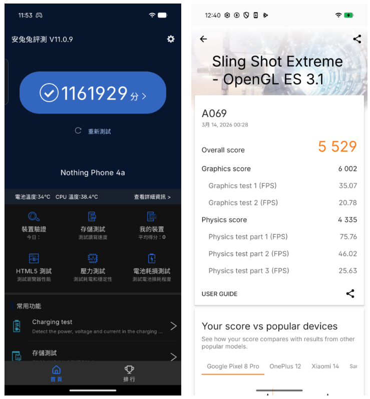 效能配置上,Phone 4a 選用了高通 Snapdragon 7s Gen 4 處理器,最高提供 12GB RAM。雖然在處理極高負載的大型遊戲時可能無法提供頂級幀率。但在 Nothing OS 高度優化的加持下,系統滑動的流暢度與開啟程式的速度皆展現出輕快感。特別是其細膩的震動回饋,消除了中階機常見的廉價感。