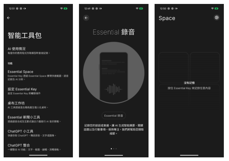 ▲最值得關注的是 Essential Space,透過專屬實體按鍵(Essential Key),用戶可快速記錄語音、文字或影像筆記,並由 AI 自動整理與搜尋。