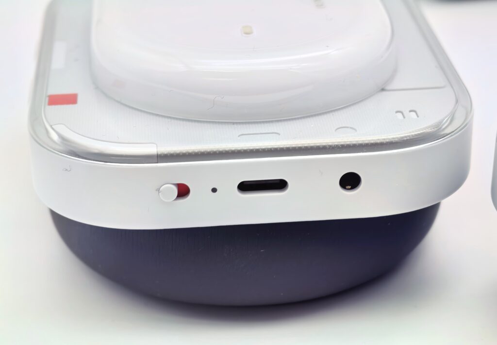 外觀上,Headphone (a) 延續了標誌性的透明元素,但整體風格變得更洗練。外殼材質由鋁金屬改為塑料,不僅有效降低重量,整體視覺感受也更簡約。機身設有實體旋鈕按鍵,操作手感扎實且反應靈敏,比常見的觸控式操作更為精準直覺。