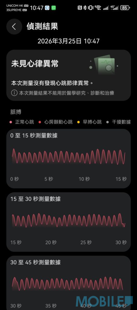 智能互動方面,手環支援與 Android 及 iOS 系統配對。除了基本的訊息提醒與快捷回覆(如 WhatsApp 等),本地用戶常用的支付功能如 Alipay HK 亦能直接在手環上生成 QR Code 付款,讓日常消費流程更為流暢。值得一提的是,即便配對非華為手機,其行事曆與天氣同步功能依然穩定,實用性極高。