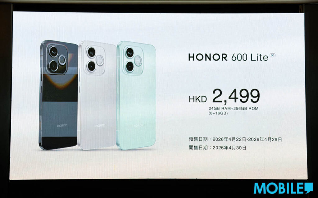 【MOBILE】今日(4 月 22 日)HONOR 在港舉行發佈會,正式推出 HONOR 600 Series 手機。這次港版將具 HONOR 600 Pro、HONOR 600 及 HONOR 600 Lite 三作,入場價低至 $2,499 起,現時已開放預售、並將於 4 月 30 日正式開賣。