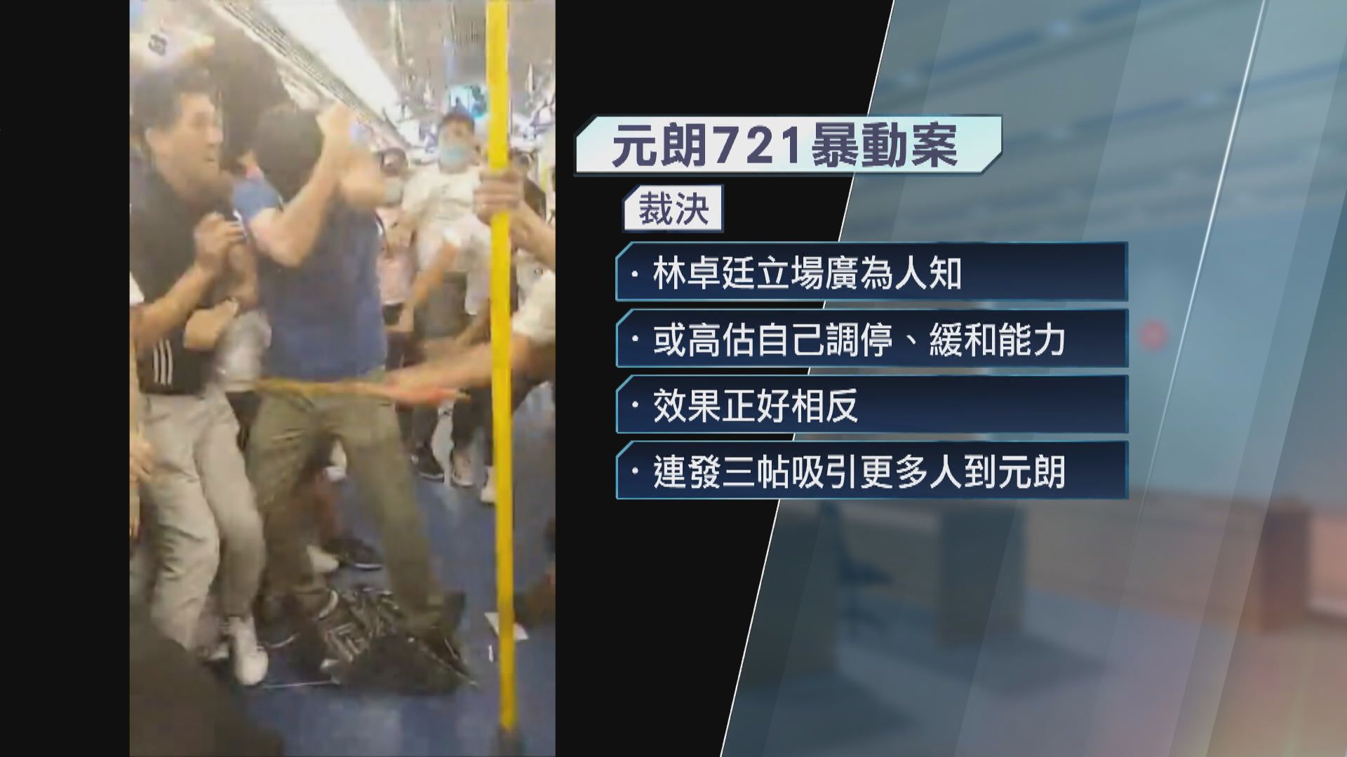 【Now新聞台】前立法會議員林卓廷就元朗721事件暴動罪成,判囚3年1個月。法官判刑時指林卓廷當晚並非為了化解衝突,如果他要求軍裝警員保護到場,事情發展就會不一樣。
