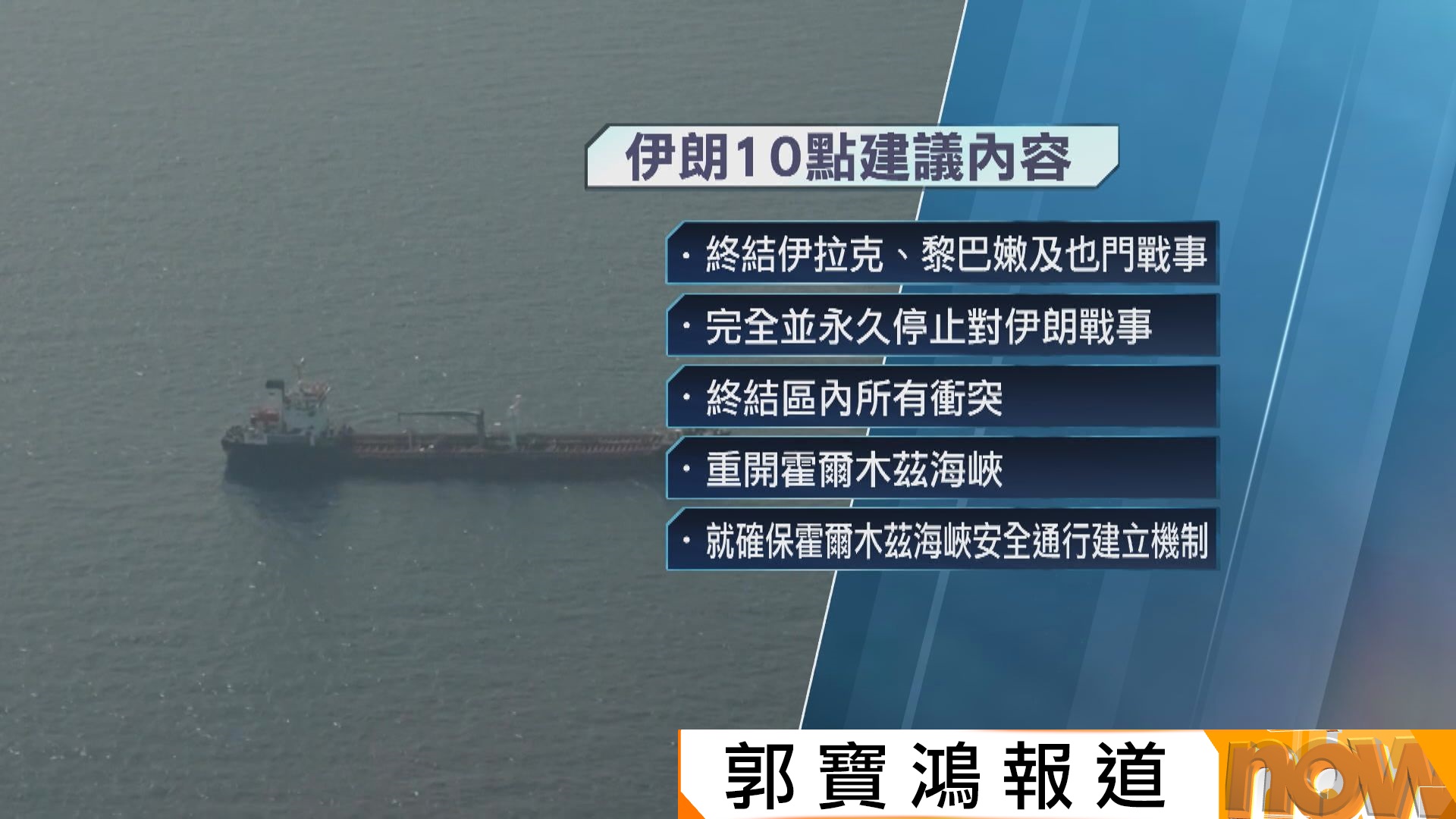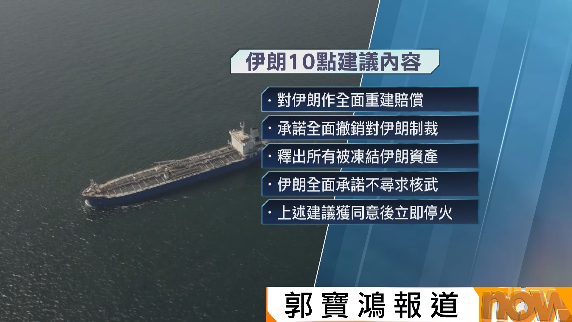 【Now新聞台】美國總統特朗普宣布,同意巴基斯坦的請求,暫停對伊朗的軍事行動兩個星期,前提是伊朗同意全面開放霍爾木茲海峽。伊朗亦宣布同意停火兩周,又稱只要美國停止攻擊霍爾木茲海峽,可以安全通航兩周。巴基斯坦其後宣布,停火已經生效,伊朗及美國代表本周五於巴基斯坦首都伊斯蘭堡展開談判。