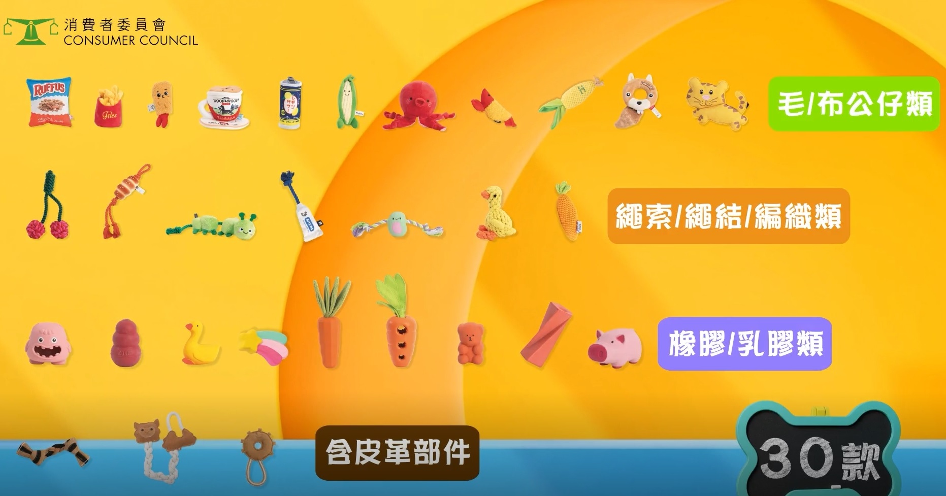 【Now新聞台】近年飼養寵物風氣持續盛行,尤以與飼主互動性較強的貓咪和狗隻佔大多數。為了滿足狗狗愛咬東西的習性,飼主總喜歡為狗狗增添玩具,消委會檢測了市面上銷售的30款狗狗玩具,涵蓋毛公仔或布公仔樣本、繩索/繩結/編織或含相關部件的樣本、以橡膠或乳膠為主的樣本,以及含皮革部件的樣本,究竟哪一款玩具最適合狗狗?