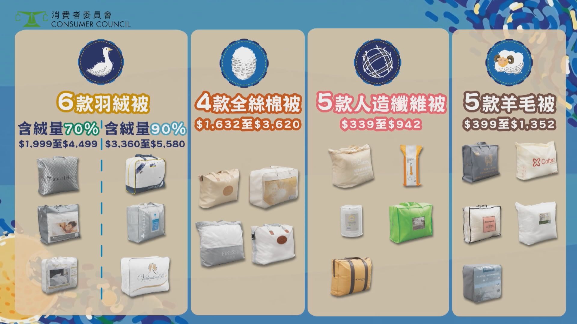 【Now新聞台】消委會測試20款雙人冬季被,認為大部分樣本整體表現理想,不過有3款樣本實際填充物成分,與標示的差異較大。