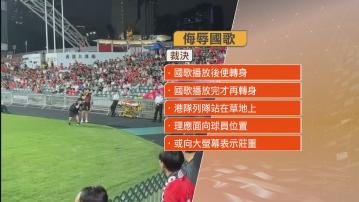 【Now新聞台】世界盃外圍賽港隊主場對伊朗賽事,3名球迷涉嫌違反《國歌法》被捕,獲准保釋。有議員指,尊重國歌是基本禮儀,建議政府加強教育。