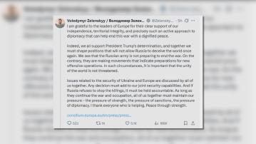 【Now新聞台】美俄元首即將於周五會談之際,烏克蘭總統澤連斯基聯同一眾歐洲國家領導人與美國總統特朗普視像通話。多方會後強調繼續團結支持烏克蘭,促請美國與俄羅斯會談時,要捍衛烏克蘭及歐洲的安全利益。