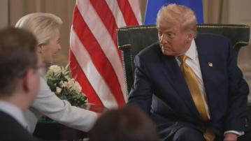 【Now新聞台】美國與歐盟宣布達成貿易協議,美國將向大部分歐盟貨物徵收15%關稅,歐盟同時會向美國採購能源及作出額外投資。特朗普形容貿易協議規模是有史以來最大。馮德萊恩則指協議是歐盟能爭取到的最佳方案,會帶來穩定及可預期性。