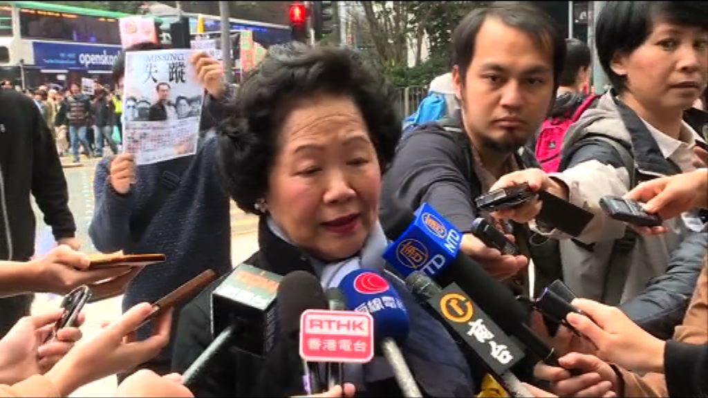 【now新聞台】前政務司司長陳方安生認為李波失蹤令人擔心,一國兩制被徹底破壞。她認為行政長官及特區政府應該更積極處理事件,並要求中央領導人協助查明真相。