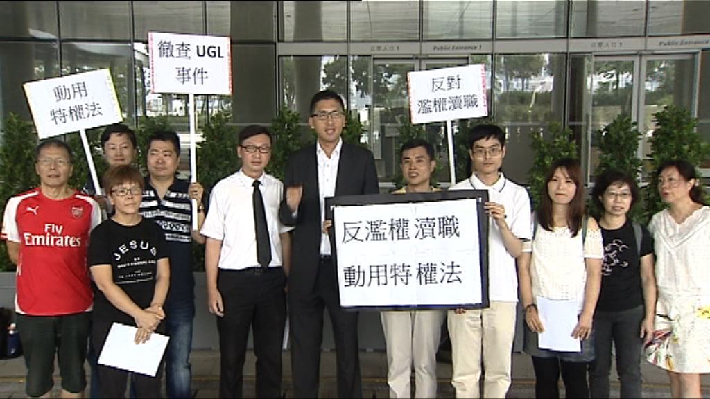 【now新聞台】民主黨到政府總部抗議要求政府交代行政長官梁振英是否有干預廉署在UGL的案件的調查。