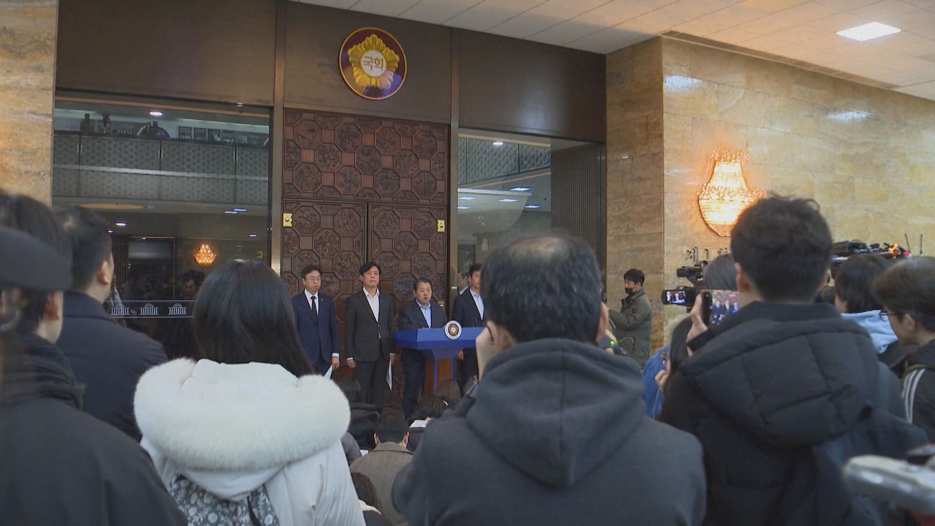 【Now新聞台】南韓政局動盪,總統尹錫悅昨晚頒布戒嚴令,歷時六小時後解除。戒嚴部隊一度進入國會,引來朝野強烈反彈。六大在野黨向國會提交彈劾尹錫悅的議案,預料周五至六在國會表決。防長金龍顯和多名幕僚都相繼請辭。