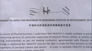 【Now新聞台】連鎖健身中心舒適堡宣布暫時全線結業,截至早上8時,消委會接獲605宗投訴,涉款近1900萬元。有區議員帶同受影響教練報案。有教練指,舊經理引述新投資者表示有意重聘他們,但他認為新合約條款有問題。
