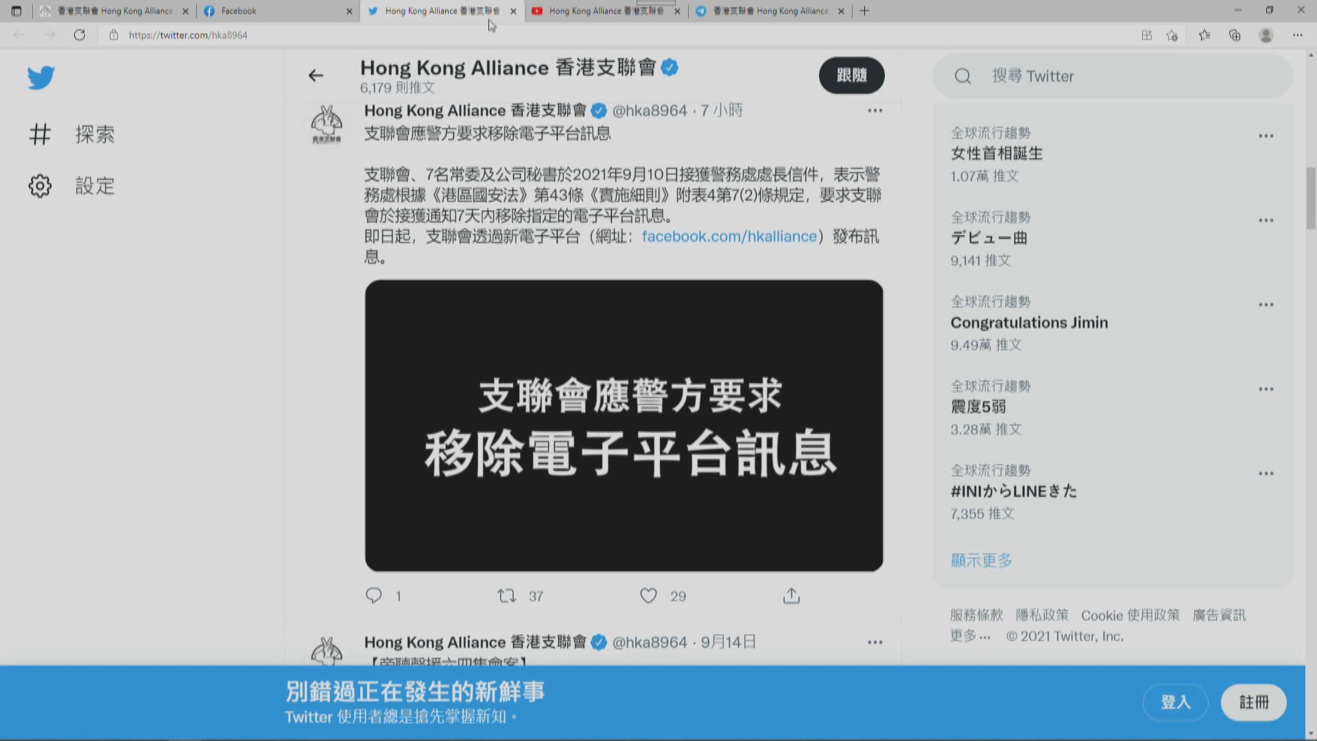 【Now新聞台】支聯會應警方要求移除各電子平台的訊息,並開設新的專頁。