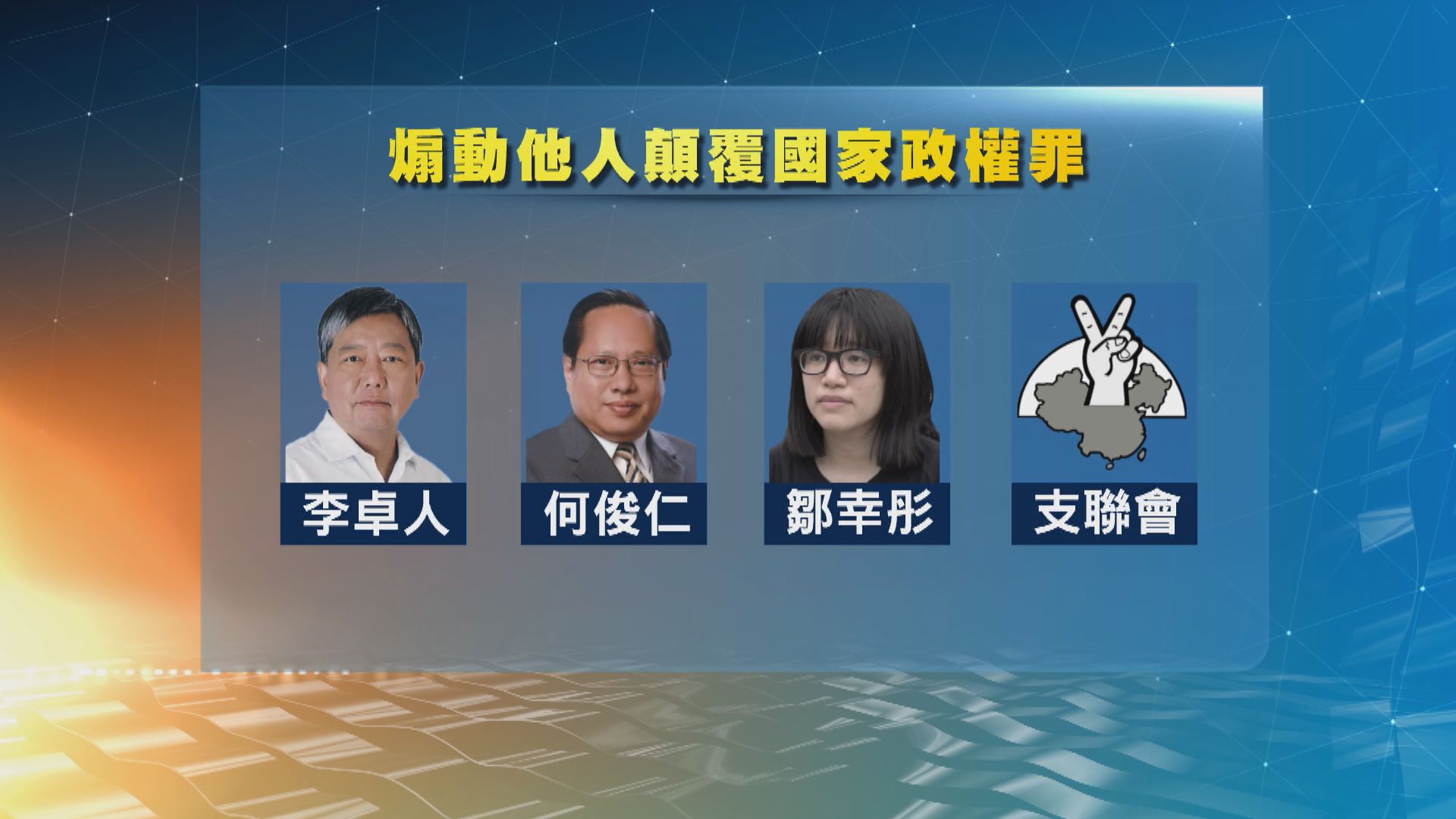 【Now新聞台】支聯會主席李卓人、兩名副主席何俊仁及鄒幸彤以及支聯會,被控煽動他人顛覆國家政權,五名常委亦被控違反國安法實施細則。