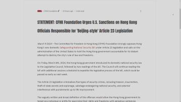 【Now新聞台】特區政府強烈譴責香港自由委員會基金會公然要求美國對中央和特區官員實施制裁,強調有關行為可能構成企圖干犯勾結外國或者境外勢力危害國家安全罪。