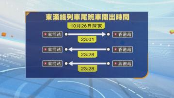 【Now新聞台】東涌綫在10月26日來往欣澳至東涌站的列車服務,會提前約兩小時在晚上十一時許終止。港鐵又指,會盡力確保工程順利進行,讓東涌綫服務翌日恢復正常,預計有數千位乘客受影響。