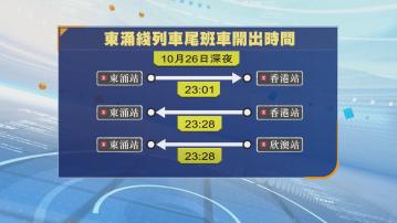 【Now新聞台】東涌綫在10月26日來往欣澳至東涌站的列車服務會提前約兩小時,在晚上十一時許終止。港鐵又指,會盡力確保工程順利進行,讓東涌綫服務翌日恢復正常。