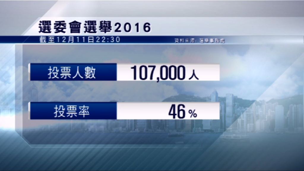 【Now新聞台】負責選出下屆行政長官的選舉委員會選舉結束,全日投票率大約46%,約十萬七千人投票。