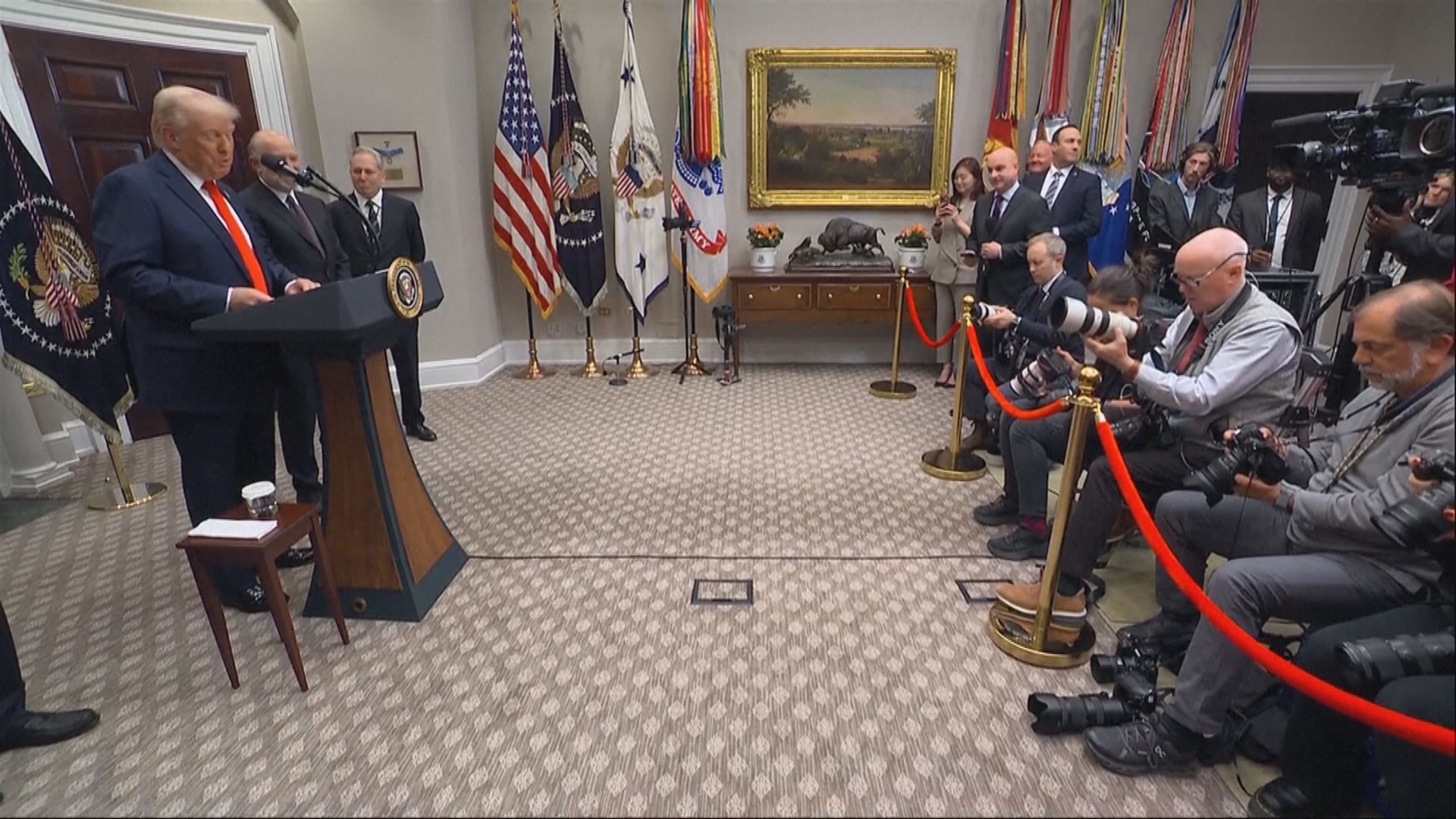 【Now新聞台】美國總統特朗普宣布對中國、加拿大及墨西哥貨物的關稅措施,會如期在本港時間今日下午1時起生效。其中中國貨將加徵一成關稅,令累計稅率增至兩成;加墨貨物則徵收兩成半關稅,加拿大外長趙美蘭說加拿大已準備好實施報復措施。