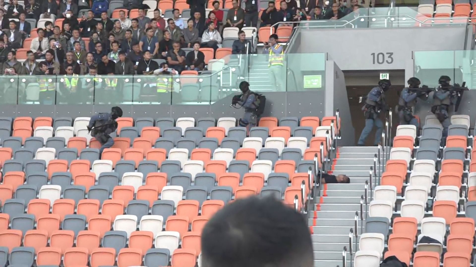 【Now新聞台】跨部門反恐專責組在啟德青年運動場舉行演習。警方指,本港恐襲威脅級別維持中度,未來會把反恐演習恆常化。