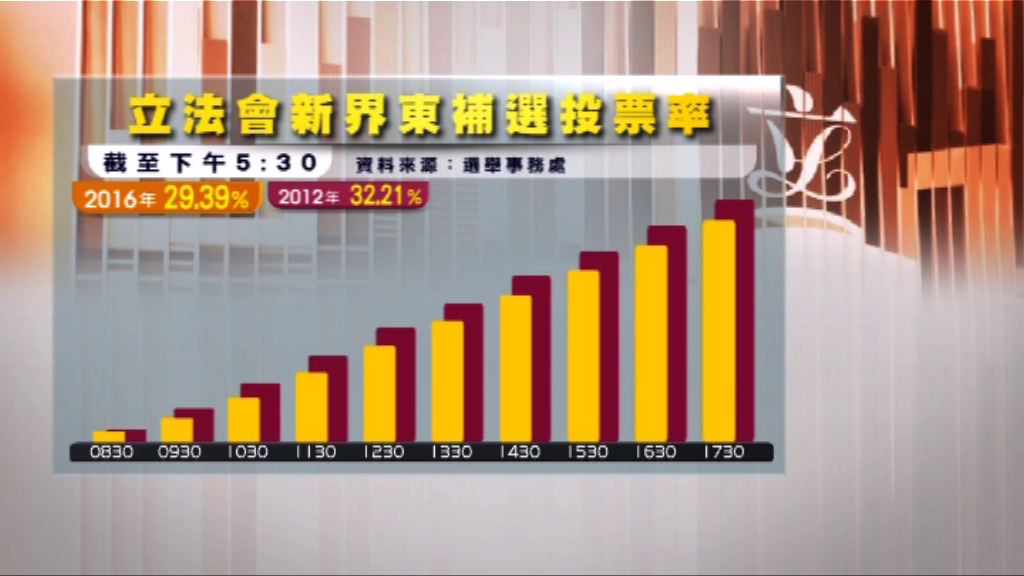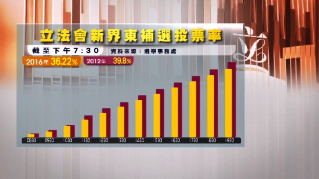 【now新聞台】立法會新界東補選結束,今次選舉全日的投票率都較2012年立法會選舉低。
