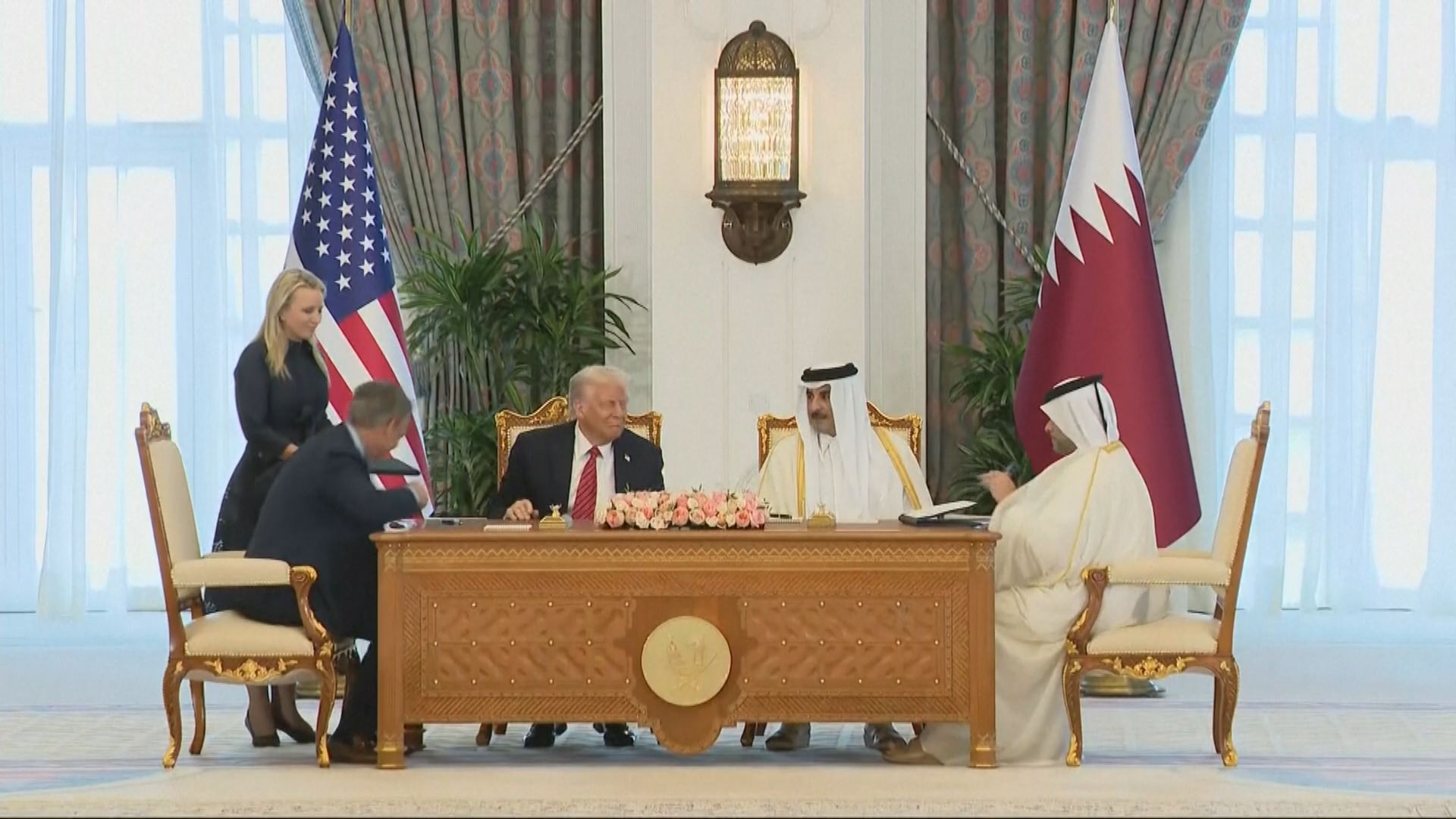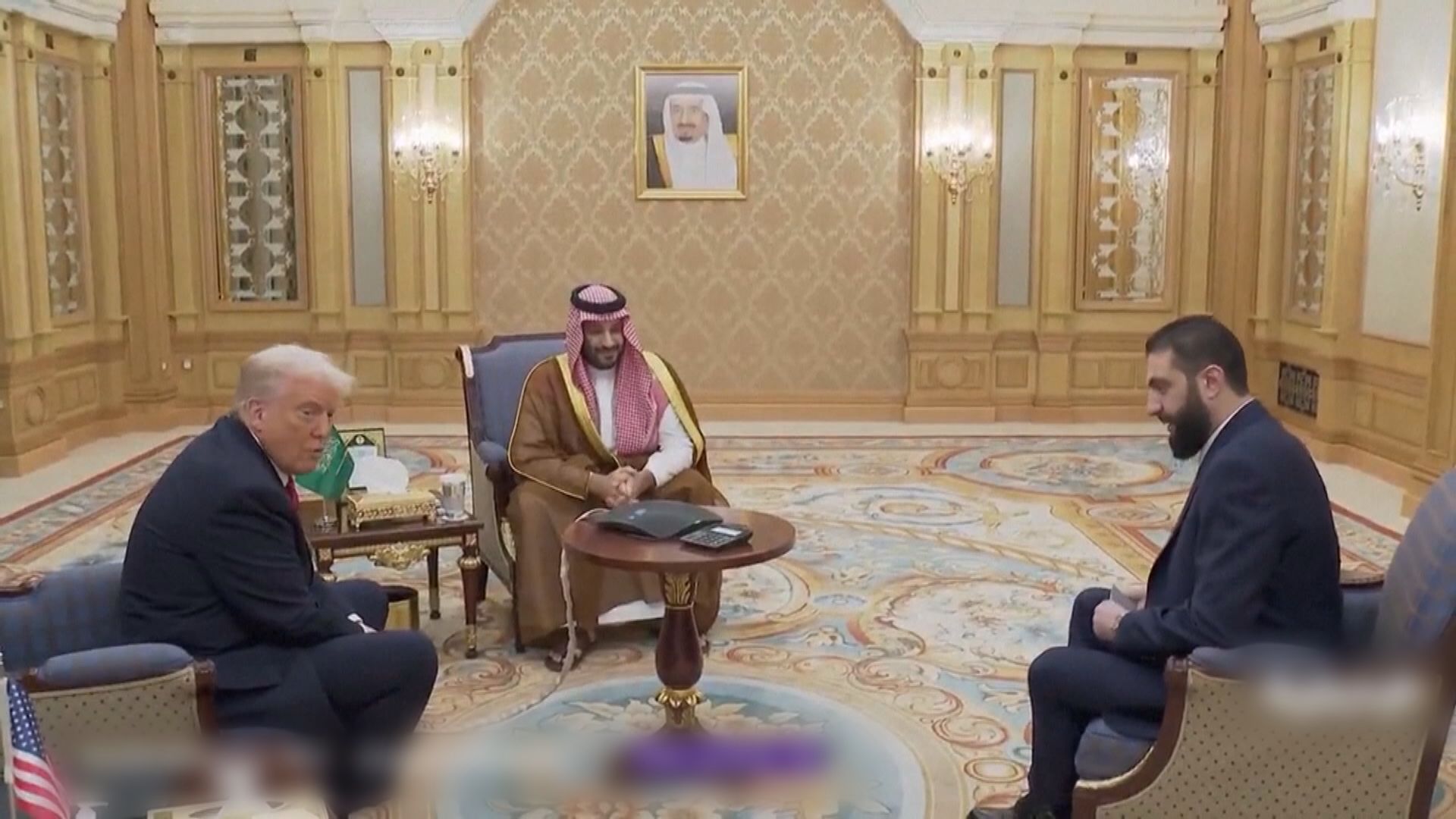 【Now新聞台】美國總統特朗普飛抵卡塔爾繼續中東訪問行程。他較早時宣布將會解除對敘利亞的制裁,並在沙特阿拉伯與敘利亞過渡總統沙拉會面,推動重建兩國關係。