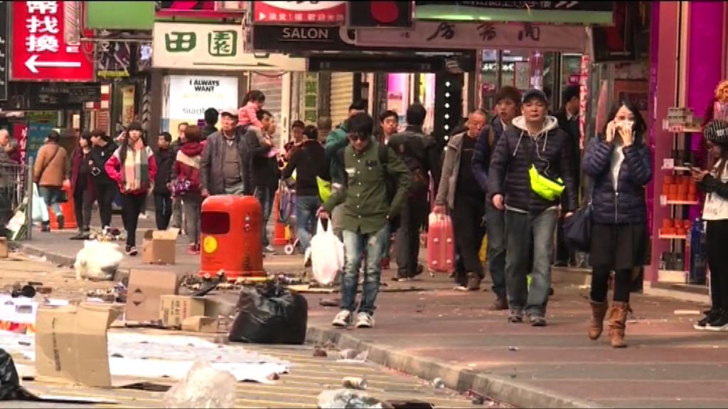 【now新聞台】騷亂過後,旺角街道一片凌亂,有金舖櫥窗玻璃亦被打破,不少店舖早上如常營業,有職員指生意大受影響,譴責示威者行為。