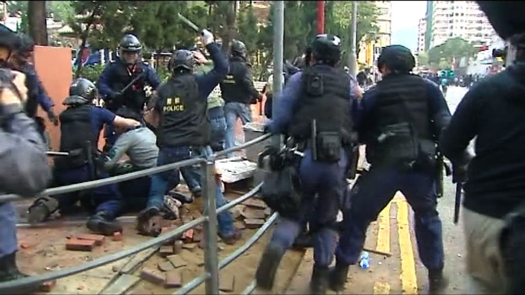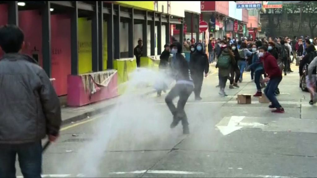 【now新聞台】旺角發生騷亂,大批示威者通宵在街頭縱火,又用磚頭擲向警員。